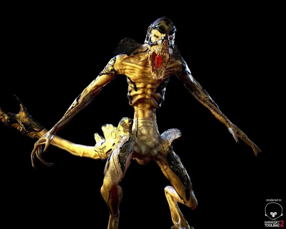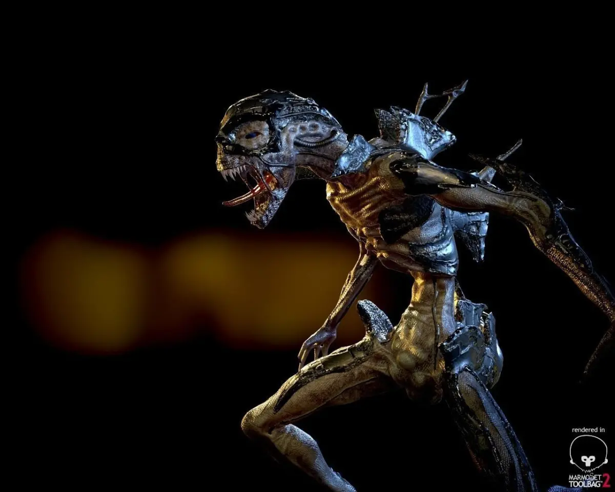 An Alien with a strange type of Armor. Comes with 2K and 4K resolution Maps (Color, Normal, Roughness, Metallic and SSS). Set up for UE4 and Unity PBR Workflow.