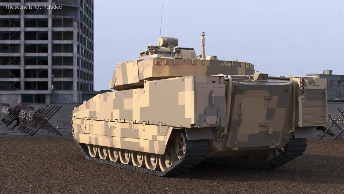Armored Infantry Fighting Vehicle Sand Camouflage is a three-dimensional model of a modern armored combat vehicle designed to transport and protect infantry troops while providing fire support on the battlefield.