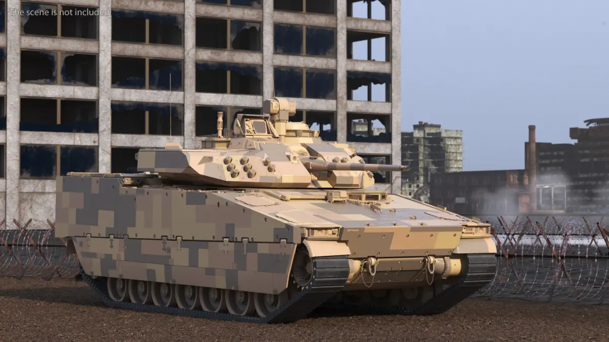 This model showcases a robust design with reinforced armor and advanced weaponry, including an autocannon and anti-tank guided missiles. The vehicle features modern tracking systems and robust suspension, enabling it to navigate various terrains effectively. It is engineered to offer a perfect balance of speed, protection, and firepower to ensure tactical superiority in combat situations.