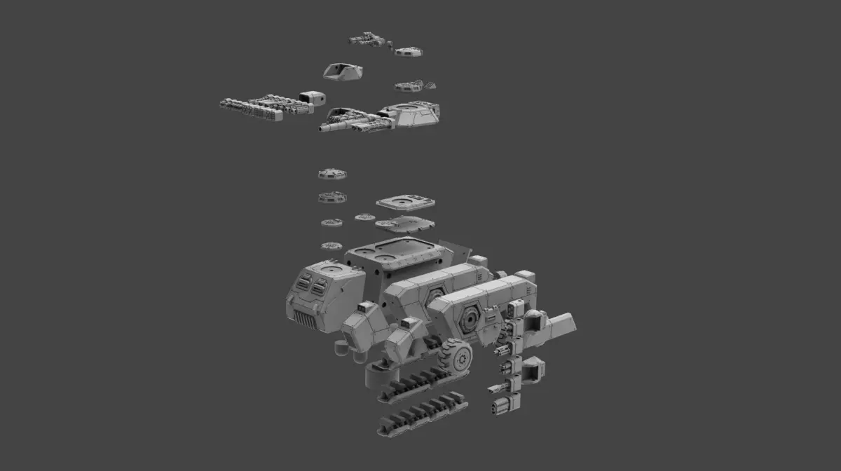High Mobility Multipurpose Vehicle (HMMV) Sci-Fi Modular Tank with lots of options, allowing the avid Modeler or Wargamer to 3d print and field tanks with limitless configurations.