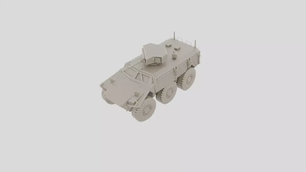 This 3D model depicts a mine resistant armored vehicle designed as a static printable object. The model features a raised armored hull and solid wheel geometry, without suspension detail or underbody components. The shape is simplified into strong geometry optimized for printing. The model contains no textures and uses only geometric detail. There is no rigging or animation. The proportions are inspired by modern mine resistant vehicles while remaining generic and non specific. Thin features are avoided to ensure durability during printing. This model is ideal for military themed dioramas, tabletop war gaming, or educational displays. It is untextured and fully prepared for 3D print.