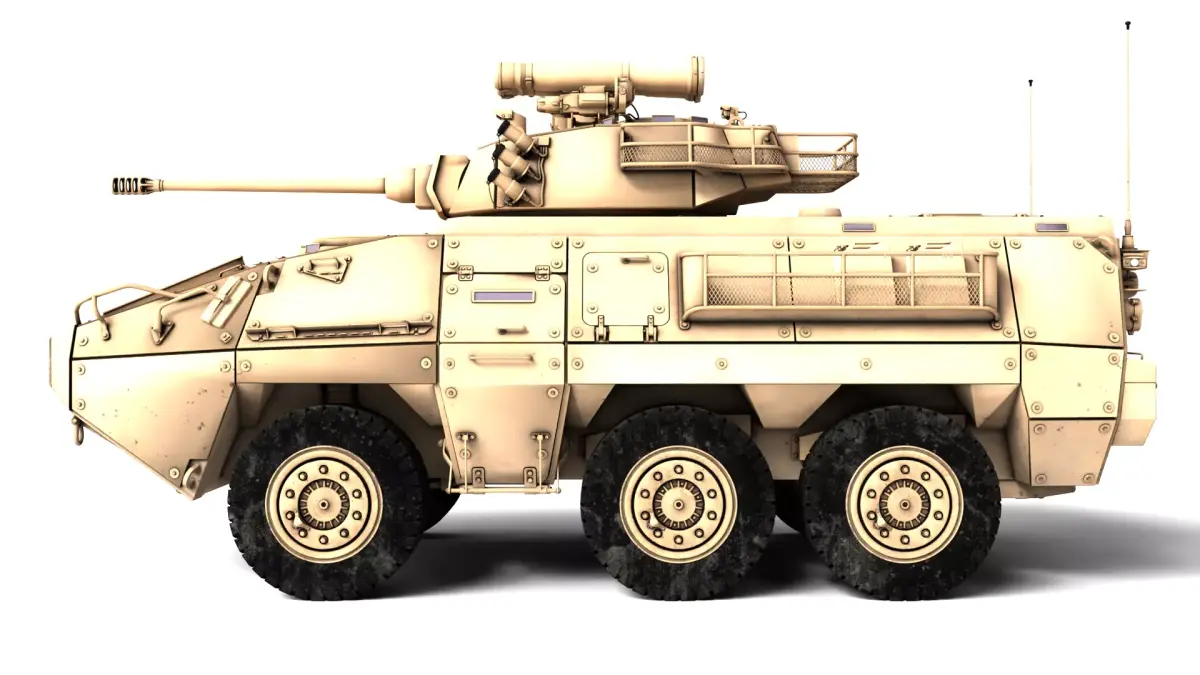 The Armored Personnel Carrier Suricate is a rigged, highly detailed 3D model of a modern tactical APC, designed for military simulations, next-gen games, cinematic sequences, and real-time rendering projects.