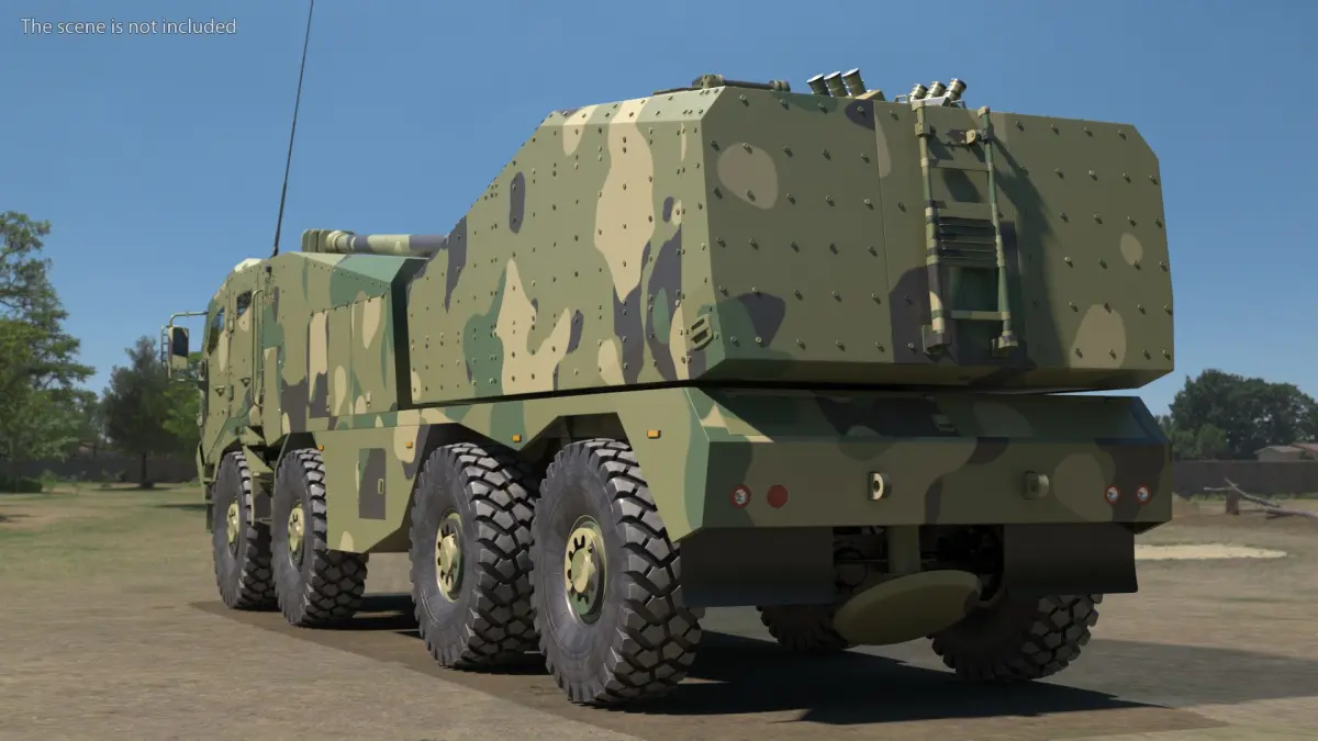 The unit is equipped with armor to protect the crew and critical components from small arms fire, shrapnel, and other battlefield threats. The primary function of the unit is to provide indirect fire support using artillery shells. The 155mm caliber is a standard size for many modern artillery systems, capable of firing various types of munitions, including high-explosive, smoke, illumination, and precision-guided projectiles.