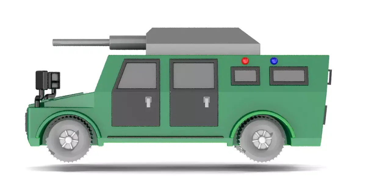 A realistic armored SUV T4 designed for 3D printing. Includes separate parts for wheels and mirrors for easy assembly and better print quality. Perfect for collectors, tabletop scenes, or military-style displays.
