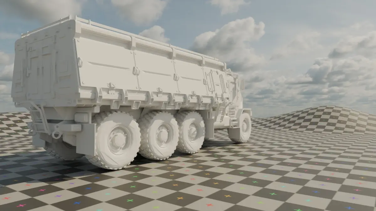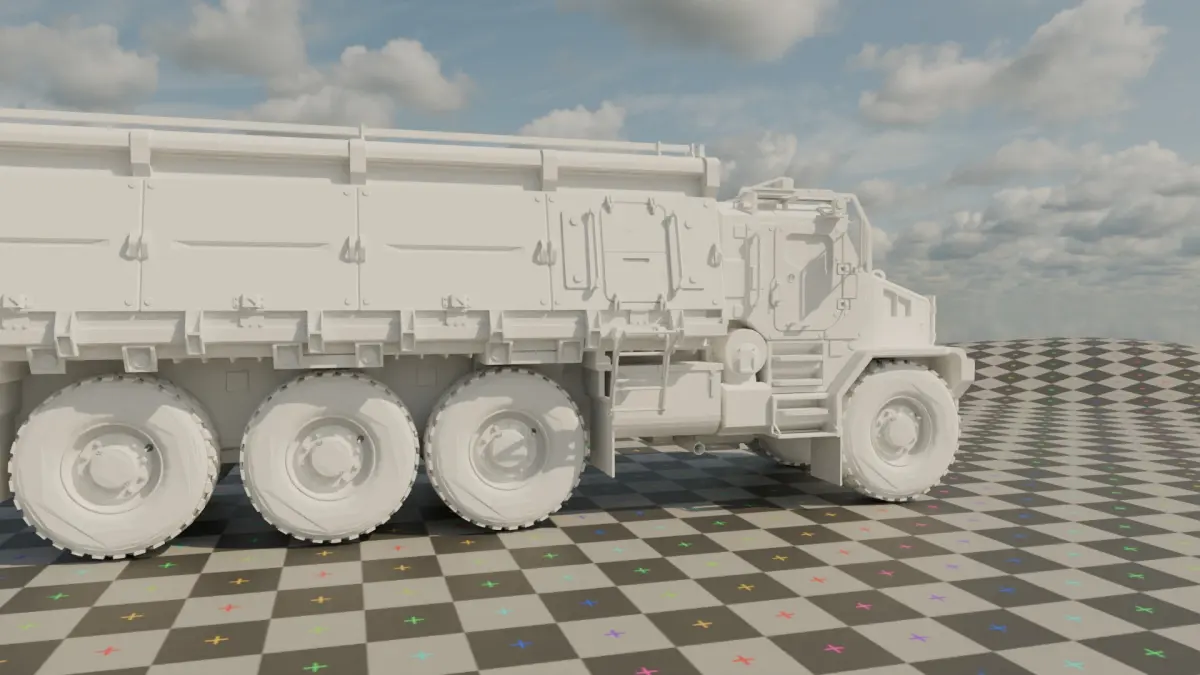 Side Panels and Armor: The side panels of the truck feature additional armor plating, designed to deflect projectiles and resist impacts. The armor is layered, incorporating lightweight composite materials to maintain mobility without sacrificing protection. The truck's design includes reinforced wheel wells that protect the tires and suspension components from damage while traversing rough terrain.