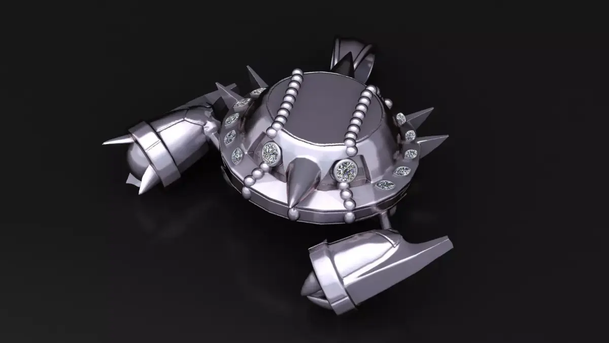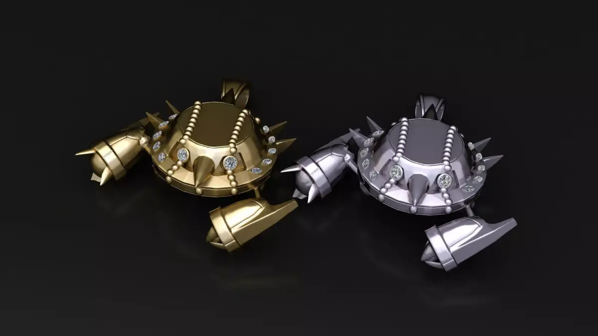 The Armored Warrior Crab Pendant is a bold fusion of nature and machinery, representing strength, protection, and resilience. Crafted in lustrous gold, this 3D design captures the essence of a mechanical crab warrior, featuring diamond-set eyes, spiked armor, and sculpted claws that symbolize power and defense. The meticulous beading and angular geometry give it a luxury futuristic look, ideal for those who love statement jewelry with a mechanical edge.