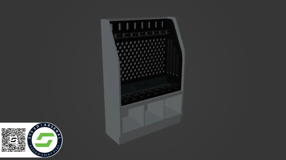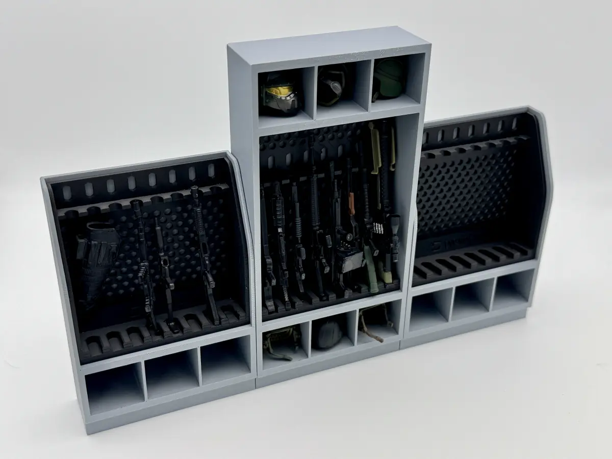 1:12 Scale accessories inspired by G.I. Joe Classified Series and part of an armory series with multiple sizes for custom layouts. Holds up to 8 long guns. The gun rack is removable and is the same as Rack #1