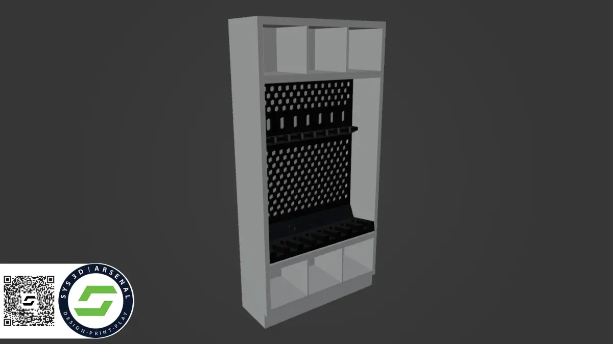 1:12 Scale accessories inspired by G.I. Joe Classified Series and part of an armory series with multiple sizes of cabinets and racks for your custom layouts. Features a long gun rack that holds up to 8 guns. 6 storage cubes sized perfectly for helmets. Additional accessories available.