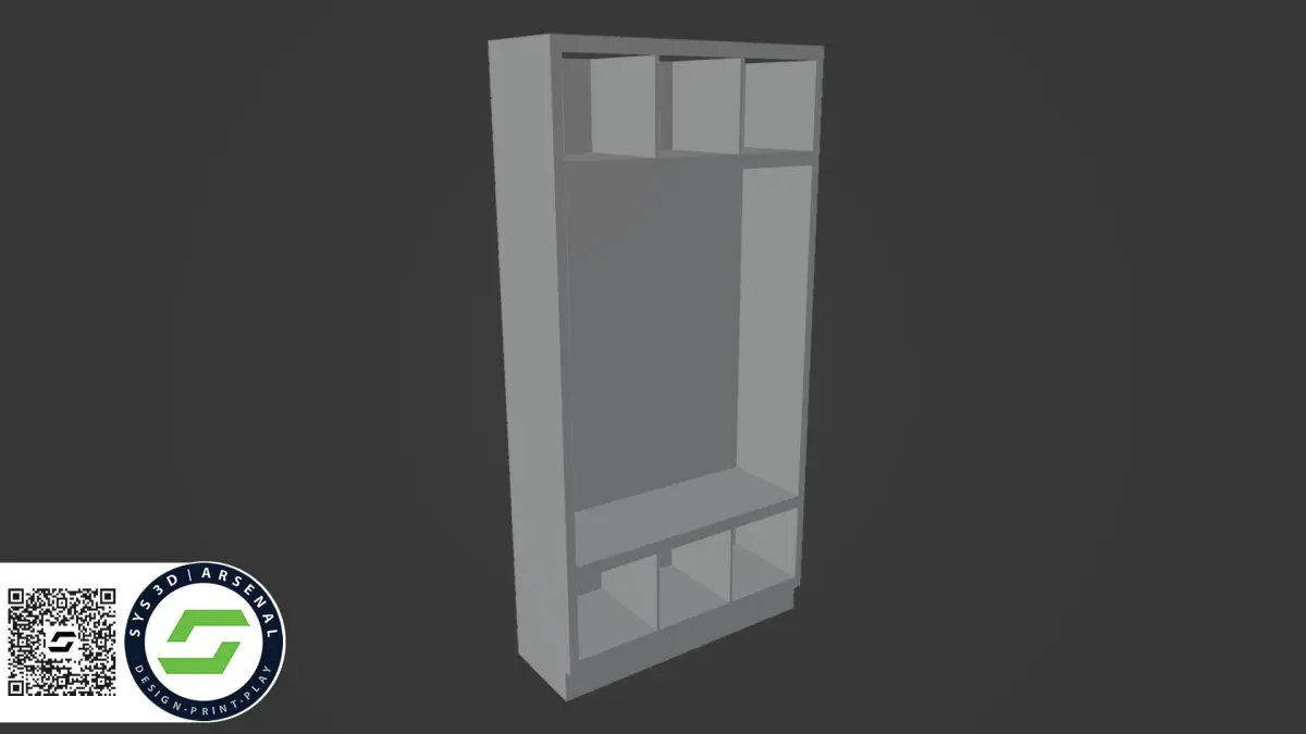 Size: 88 X 180 X 33mmIncludes: 1 Peg Rack, 1 Cabinet, 3 wide hooks, 1 narrow hook, 4 single hooks. Scale: 1:12