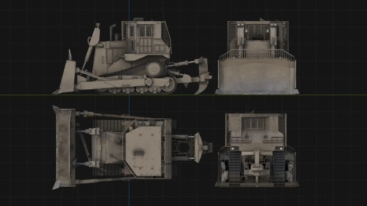 4k PBR textures in PNG format for bulldozer. 1k for the tracks and 2k for the cage.