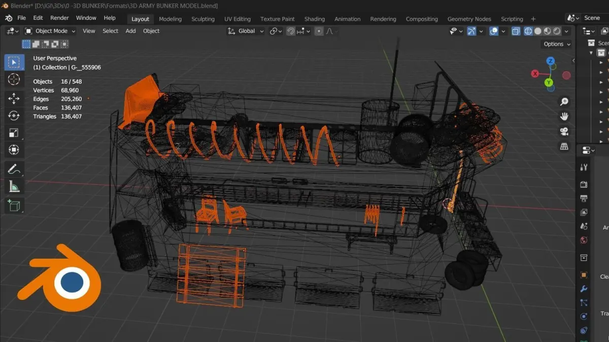 THE 3D LARGE ARMY BUNKER Realistic design for Games Low-Poly design with crafts.
