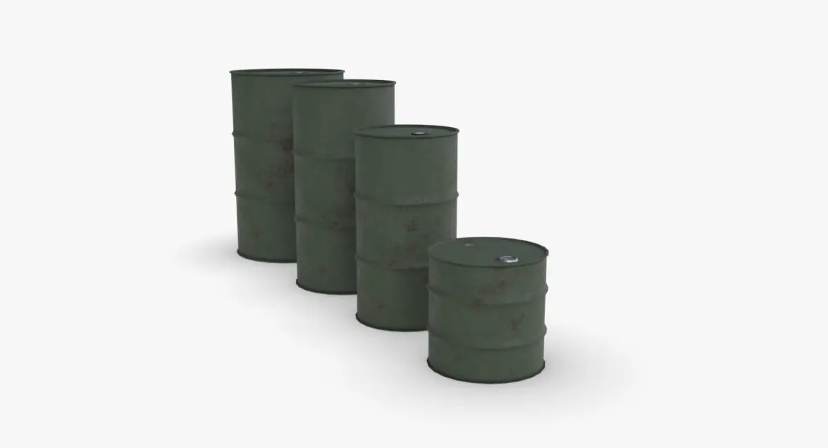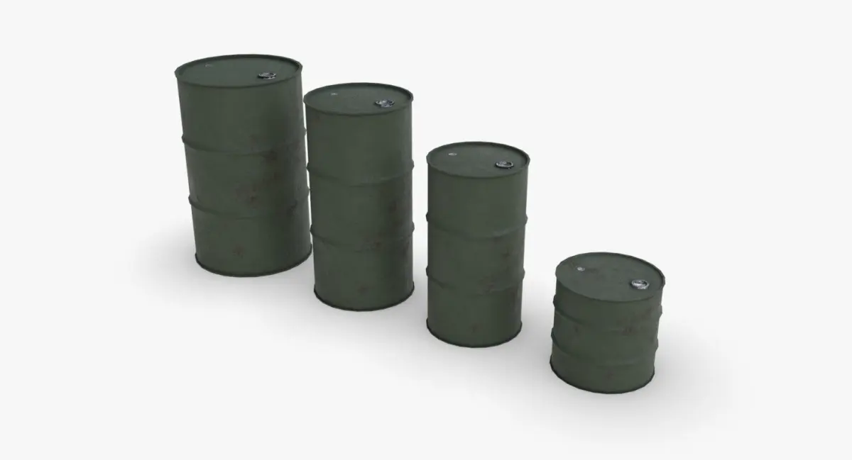 A model of 4 metallic barrels. The model is ready for game and include 3 LODs and a single material for each variation. It is available in a single object for each variation and each LOD. The material represent a green army painted version. The variations of size are :