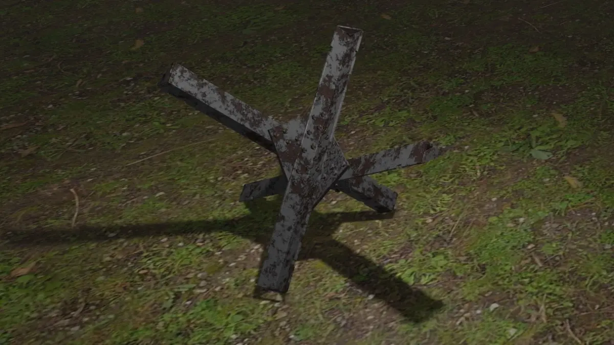 Lowpoly model of army roadblock for level designingPBR material - rusty_metal