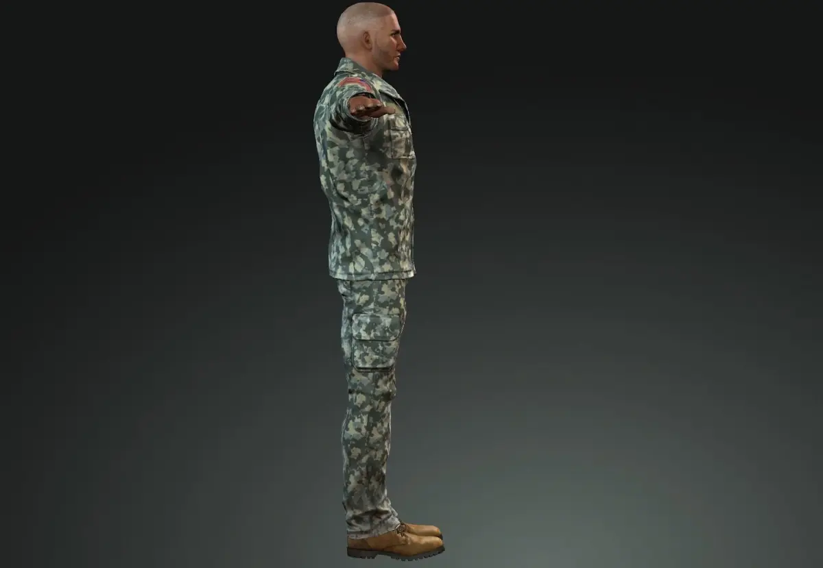 This is An Army Male character we can give you Formate that you want Requird thank you