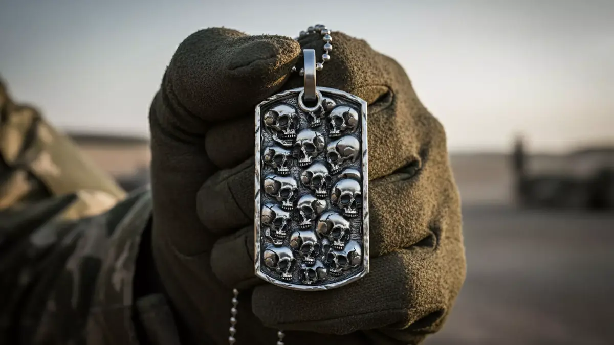 Army Skull Token Gothic Rectangular Medal Pendant