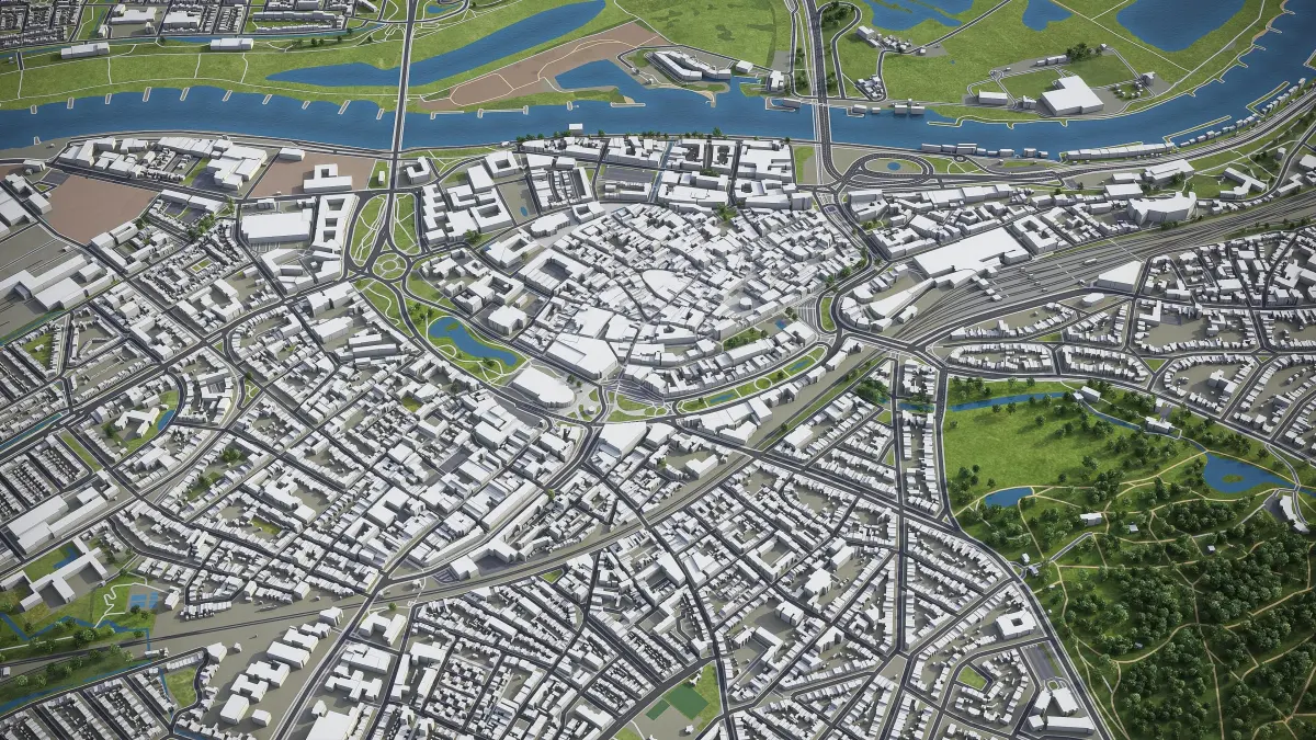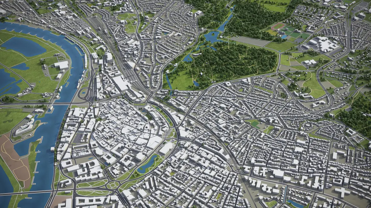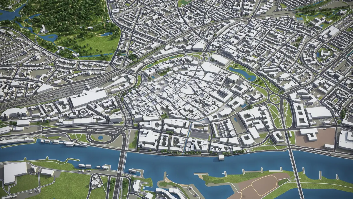 - Full city extents up to 100 x 100 km — or crop to an area of interest for better format compability and scene performance