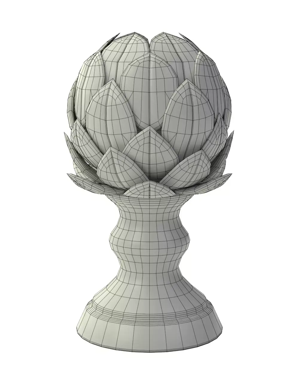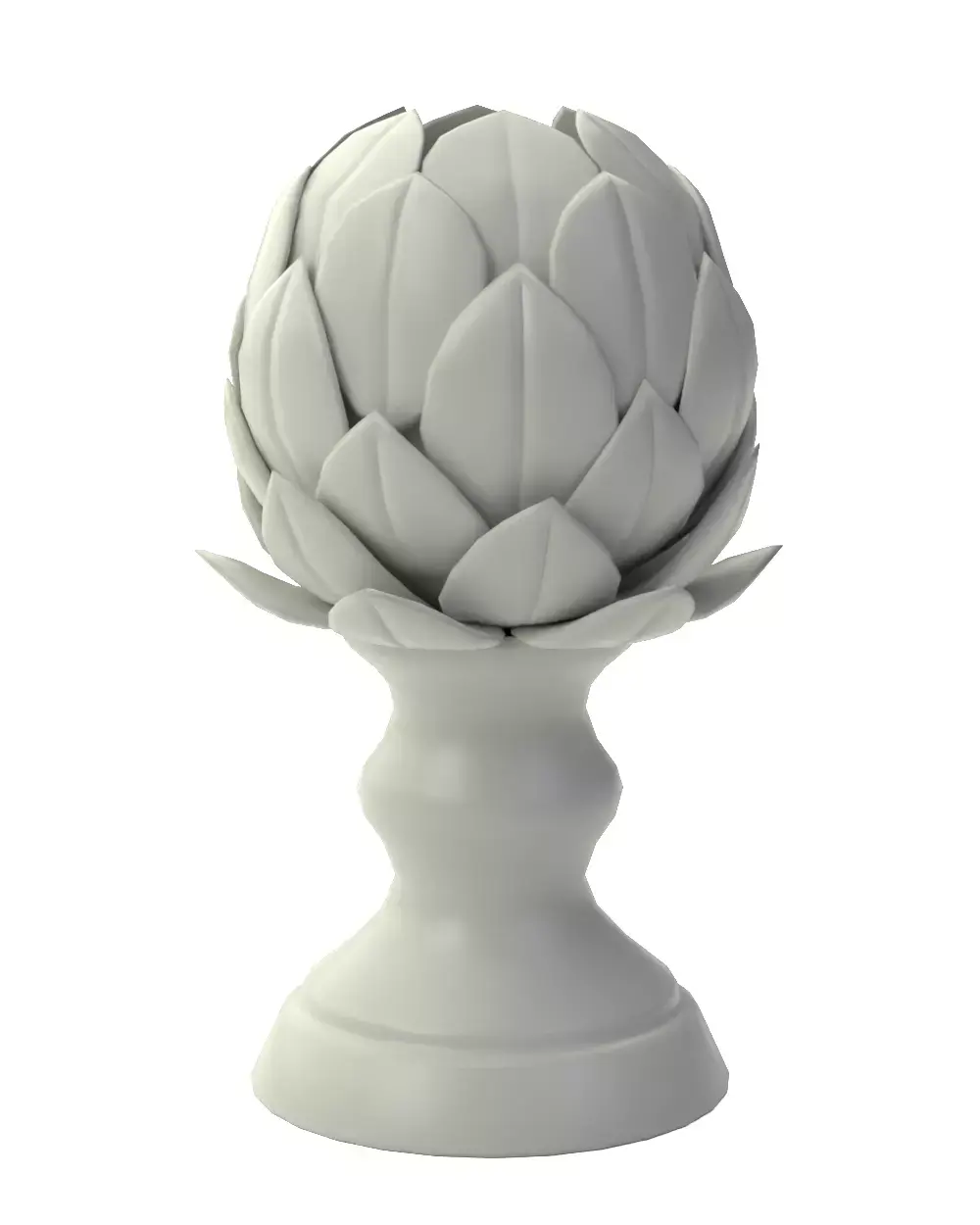 A detailed 3D model of the Arnold White Ceramic Artichoke Statuette, crafted to bring a touch of modern elegance to any interior scene. This decor piece features a glossy ceramic finish with refined detailing that captures the natural artichoke form, making it an ideal accent for tabletops, shelves, or centerpieces.