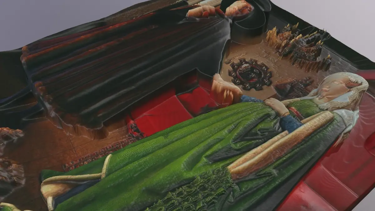 Great 3d model of a bas-relief based on the famous painting ARNOLFINI PORTRAIT by JAN VAN EYCK. 3d model for cnc machine, 3d printer and laser engravement.