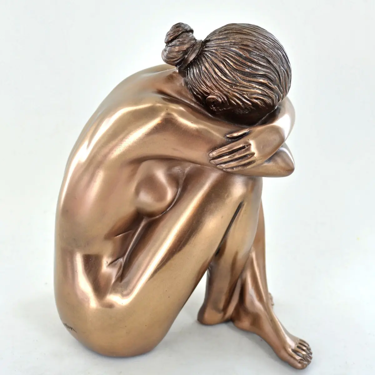 A stunning sculpture of a woman taking a moment of peace. Keeping her arms and legs crossed as if she's closing in on herself, this is a sculpture full of thoughts. A tranquil piece of home décor. Cold Cast Bronze is a technique used for making figurines, it involves blending bronze powders with a specially formulated resin to produce a material which is applied to the interior of a silicone mould. The mould is then filled with a blend of resin and bronze metal powder, the figurine is then left to set. The finished item has the same appealing look of a bronze figurine, a cool feel and is weighted. All in all, a cold cast bronze figurine is a piece of art produced for a fraction of the cost of solid bronze but still carrying the same incredible detail and design. All of their bronze figurines and figures are produced this way. From bronze horse figurines to elephants, hares to dogs all are cared in exactly the same way. Dust your bronze figurine an untreated cloth or duster, use absolutely no chemicals at all. If your figurine is very detailed or has hard places use an artist’s paintbrush. All of their cold cast bronze products are of course very fragile so be careful!High quality cold cast bronze decor for the homeFinish: BronzeA great sentimental gift ideaItem is assembledA stunning sculpture of a woman taking a moment of peace. Keeping her arms and legs crossed as if she's closing in on herself, this is a sculpture full of thoughts. A tranquil piece of home décor. Cold Cast Bronze is a technique used for making figurines, it involves blending bronze powders with a specially formulated resin to produce a material which is applied to the interior of a silicone mould. The mould is then filled with a blend of resin and bronze metal powder, the figurine is then left to set. The finished item has the same appealing look of a bronze figurine, a cool feel and is weighted. All in all, a cold cast bronze figurine is a piece of art produced for a fraction of the cost of solid bronze but still carrying the same incredible detail and design. All of their bronze figurines and figures are produced this way. From bronze horse figurines to elephants, hares to dogs all are cared in exactly the same way. Dust your bronze figurine an untreated cloth or duster, use absolutely no chemicals at all. If your figurine is very detailed or has hard places use an artist’s paintbrush. All of their cold cast bronze products are of course very fragile so be careful!