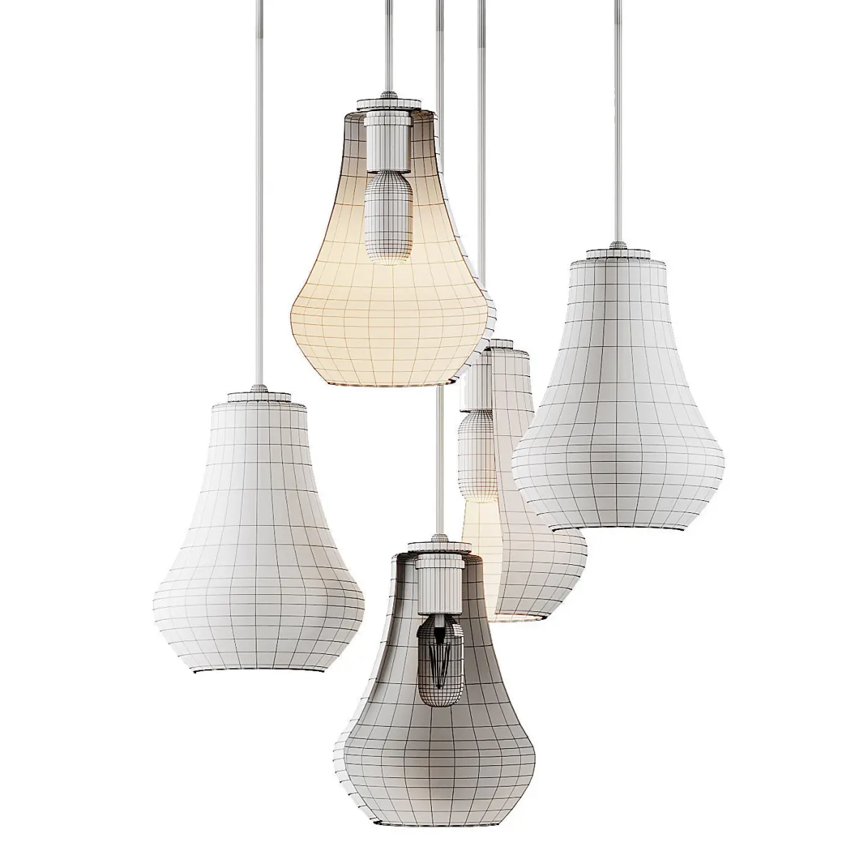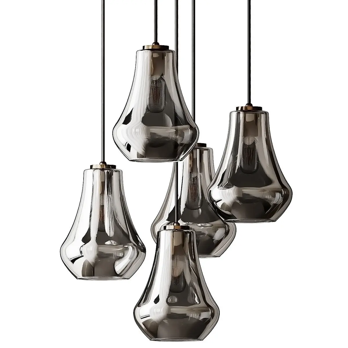Model: Arren Brass Round 5-Light Pendant with Silver Teardrop Shades