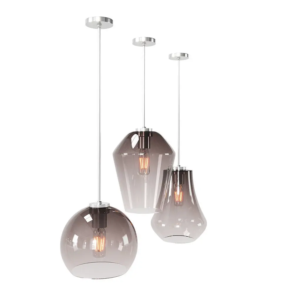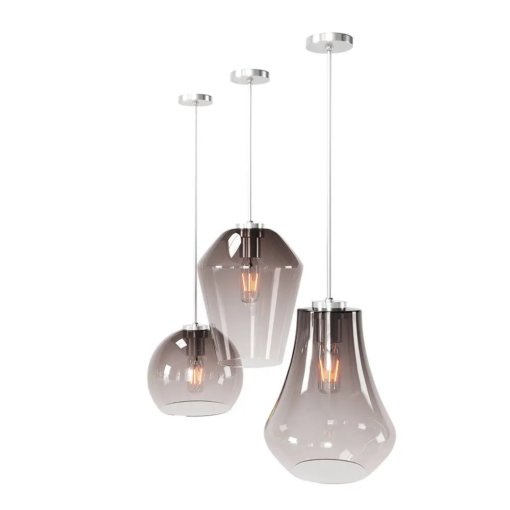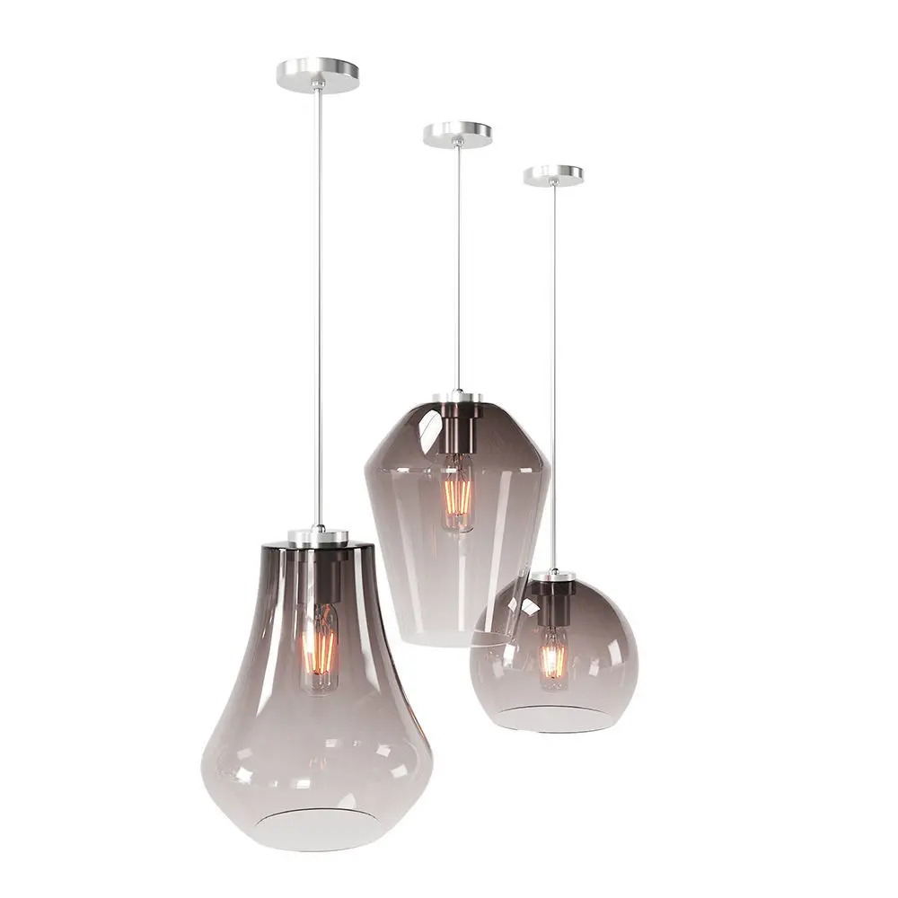 Arren light pendant suspends three elegant glass shaders – round, angled and teardrop with chrome fixture finish. Suitable for single- and multi-bulb ceiling light for a modern look.