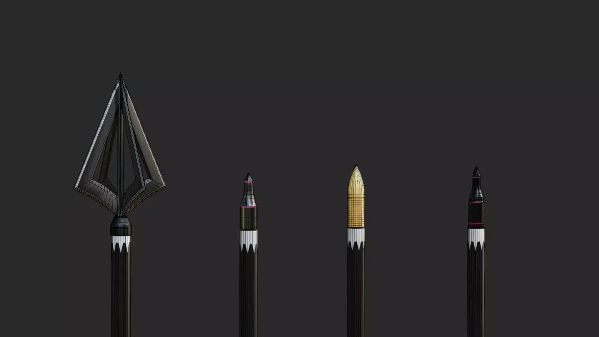 Realistic Fletching: Detailed vanes/fletching with accurate alpha/geometry for a believable look in flight.