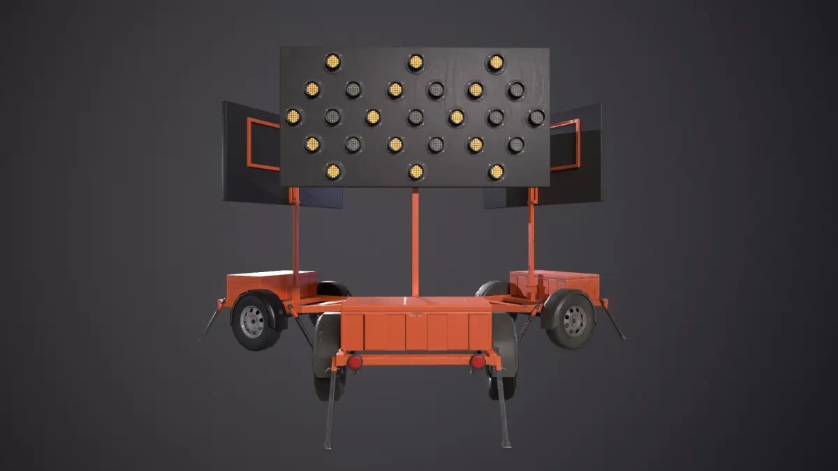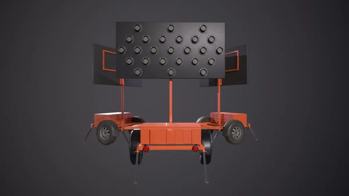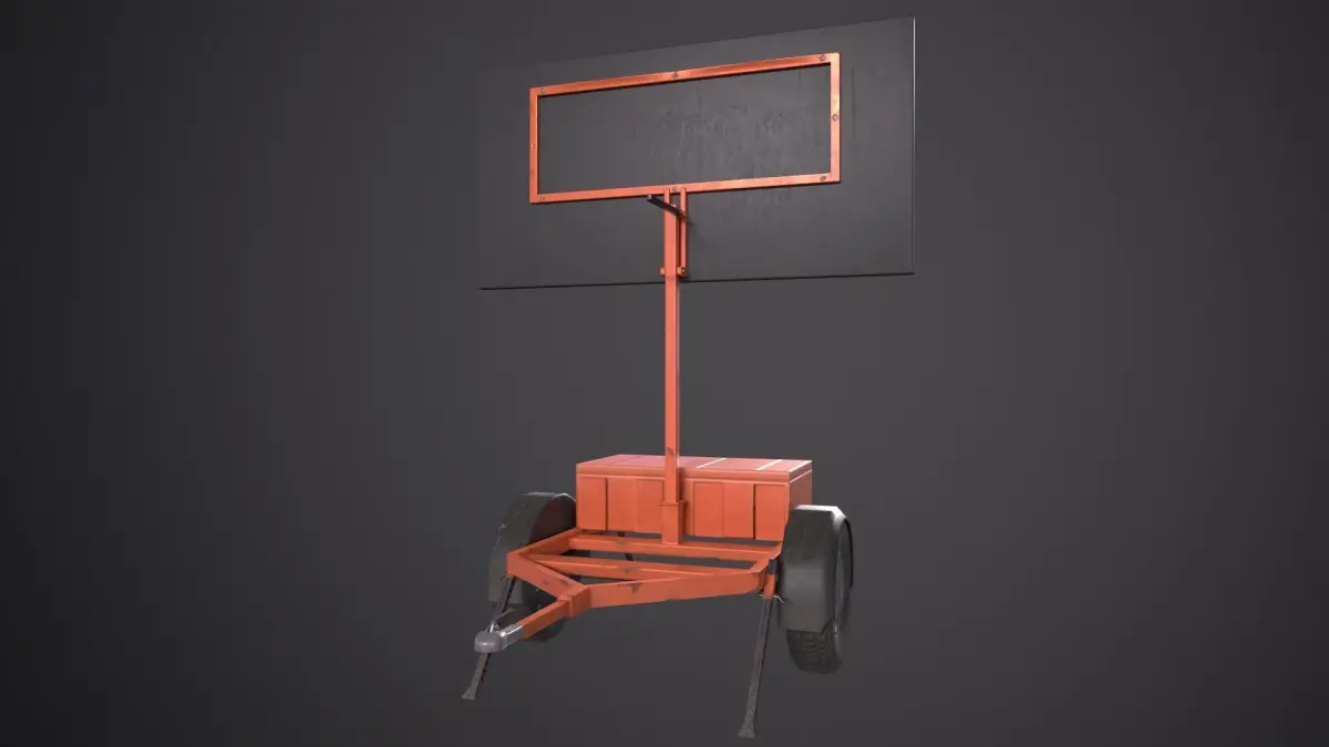Game ready, low poly arrow board trailer model created in blender.
