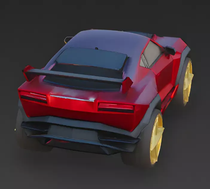 Crimson Metallic Finish The body is coated in a deep, metallic crimson red. This vibrant color highlights the sharp, low-poly style facets of the car, giving it a premium yet playful look that stands out against any game environment.