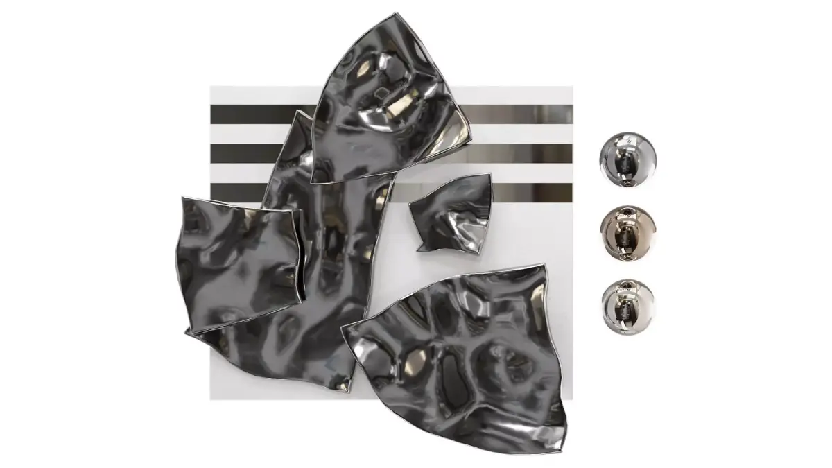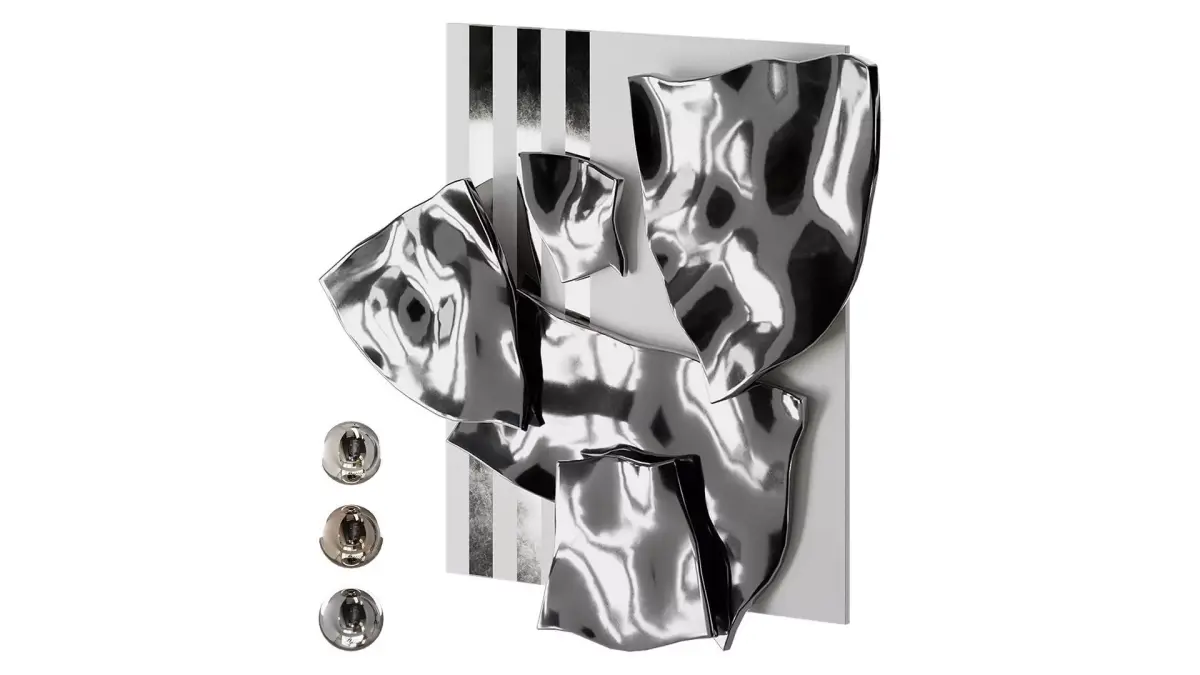 Art Abstract R01 is a high-quality 3D model of a contemporary three-dimensional wall panel. This artistic piece combines various textures including plaster, fabric, and metal sheets to create a unique relief sculpture. The design features a wavy, striped pattern with elements of gold leaf and foil, making it a perfect centerpiece for Modern, Art Nouveau, or Mid-century interiors. Its sophisticated textures and metallic accents also make it an ideal choice for Dopamine Decor and luxury residential or commercial visualizations.