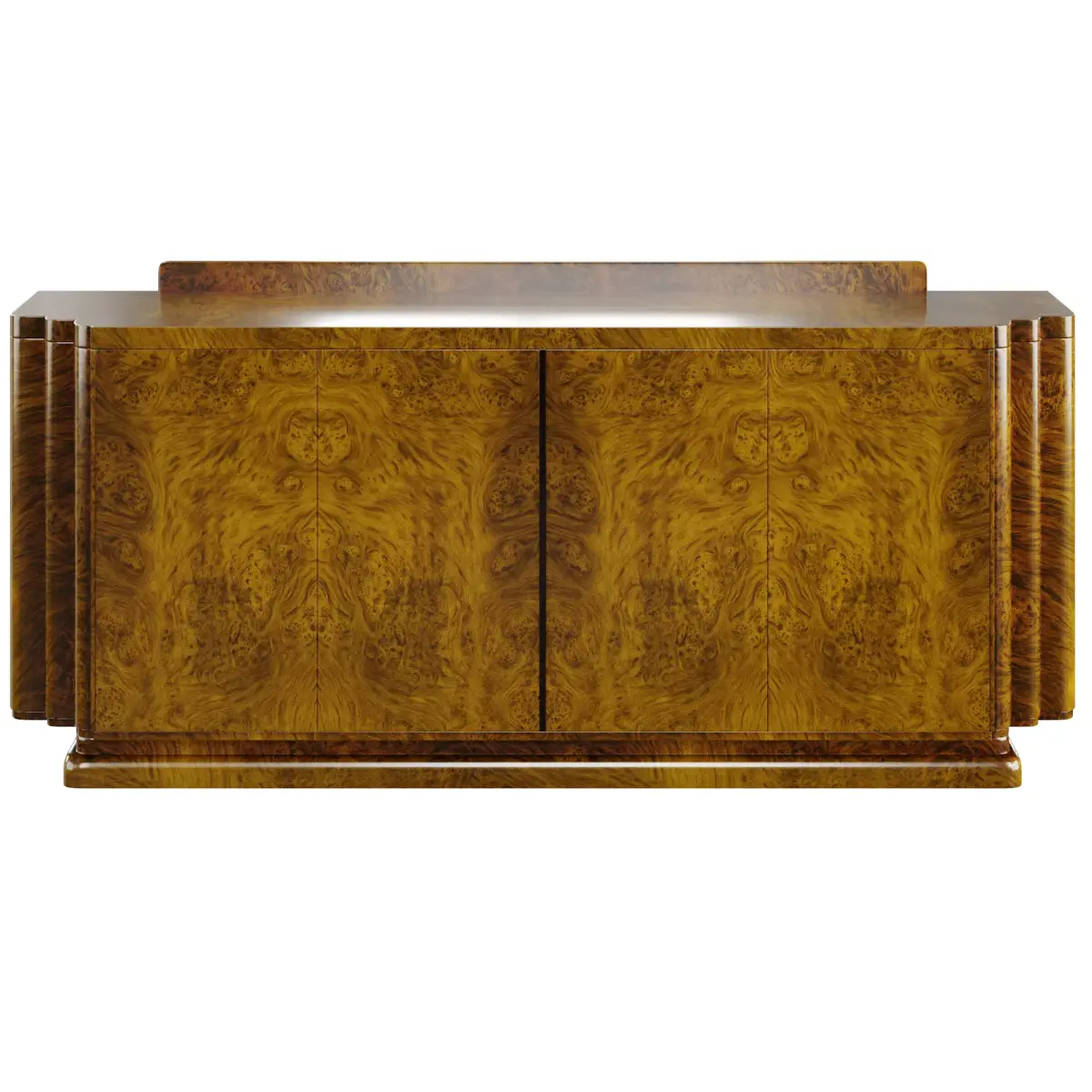 A premium Art Deco sideboard designed with a realistic burl wood veneer and clean optimized topology.This model is ideal for interior design, architectural visualization, product rendering, and high-end furniture scenes.