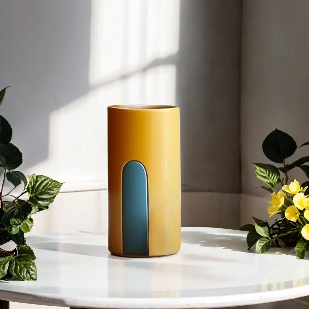 The Art Deco Multi-Purpose Holder exudes a vintage elegance with a modern twist, designed to be both functional and aesthetically appealing. The cylindrical shape, with its sleek lines and minimalist form, reflects the refined simplicity of Art Deco design. The warm mustard yellow base, contrasted by a soft blue accent, adds a pop of color, making this piece ideal for brightening up any room.