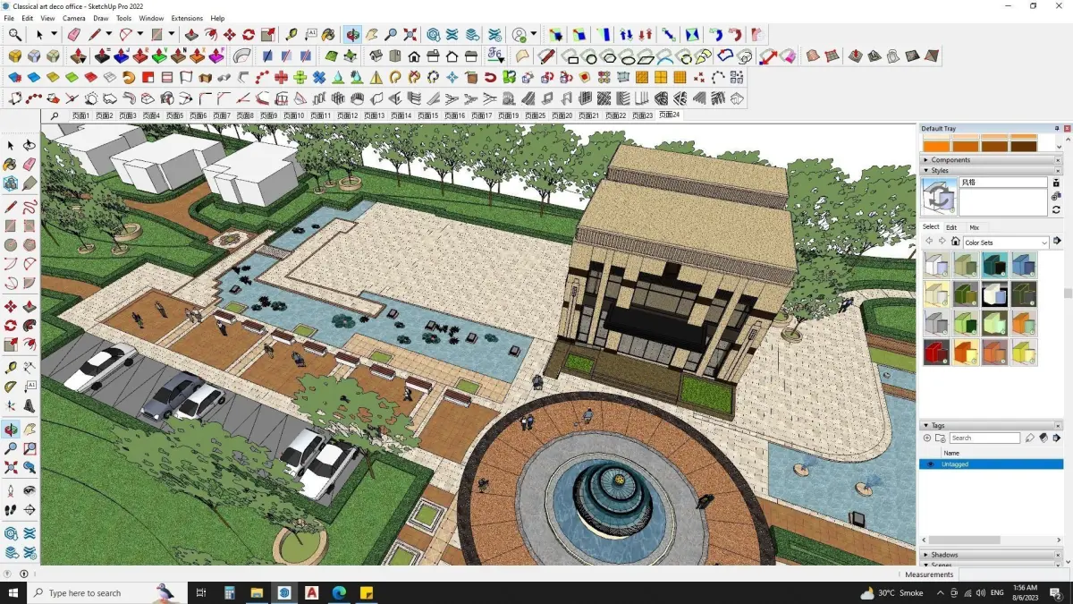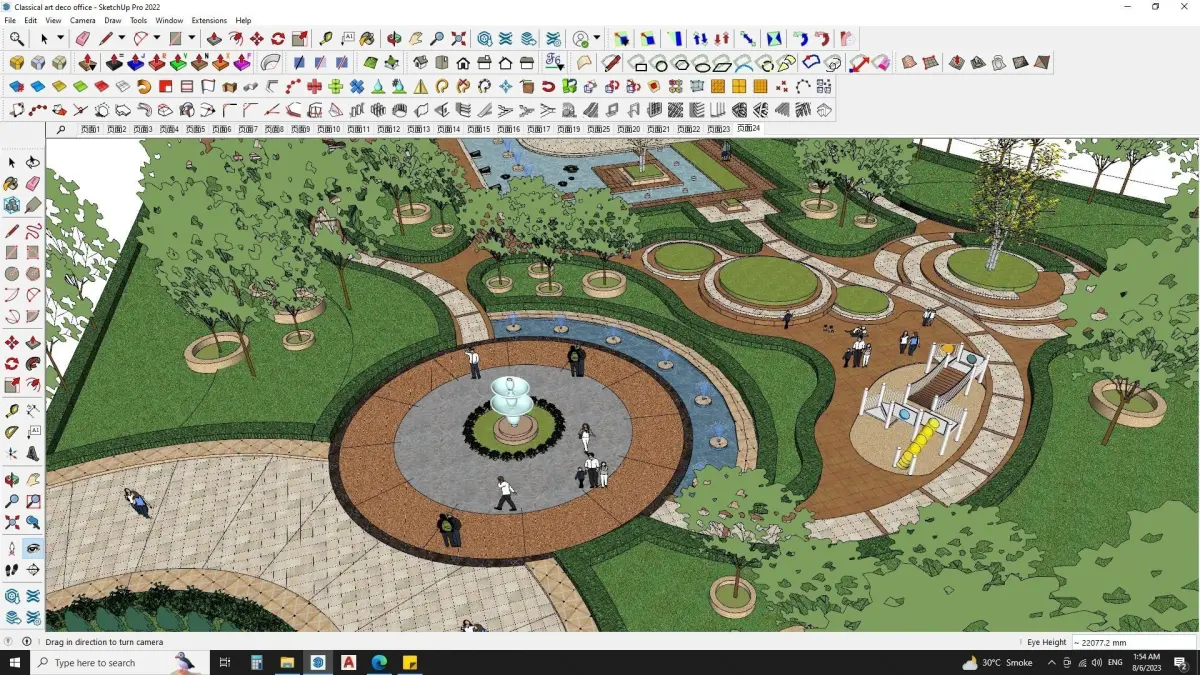 Model includeArt deco office building with fountainMusement Theme park with waterfallHousing gate These are all included in this sketchup model