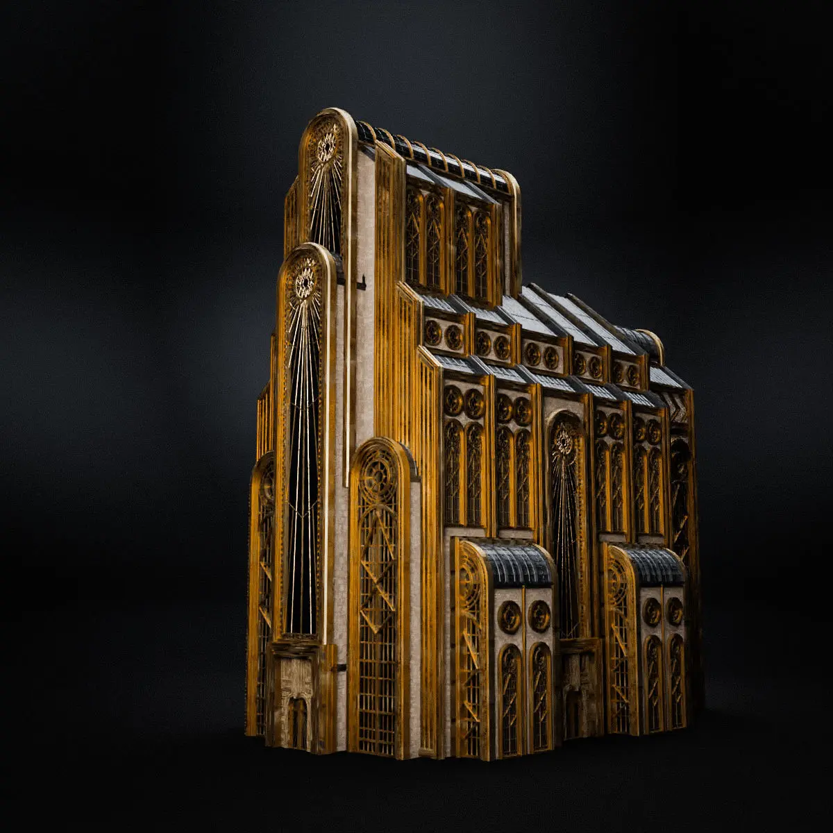 a model of a ART DECO SKYSCRAPER BUILDING. everything is handmade by me with attention to detail, really good model to use for film, VFX, or game. 2K texture included. PBR ready. normal maps, specular, roughness etc. no triangle or ngon. only quad. uv mapped. medium poly 3d model. easy if you want to change the texture.(all pbr texture included in the pack). this is part of my STEAMPUNK ART DECO PACK. be sure to check my page. save more by buying the pack. thank you.