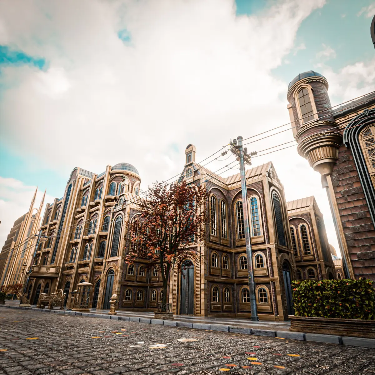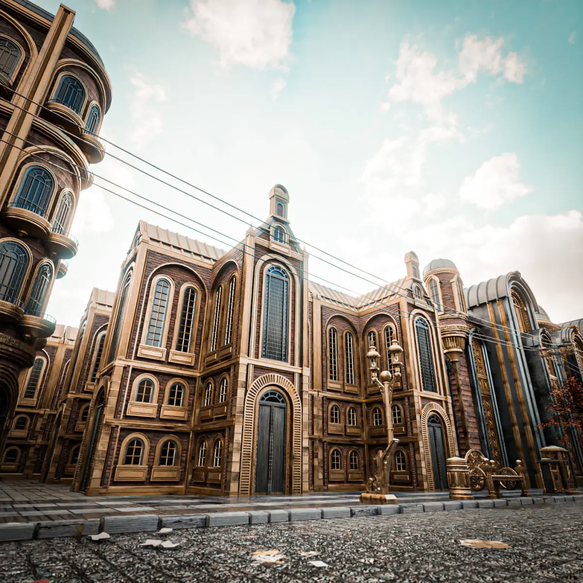 a model of a ART DECO STEAMPUNK BUILDING. everything is handmade by me with attention to detail, really good model to use for film, VFX, or game. 2K texture included. PBR ready. normal maps, specular, roughness etc. no triangle or ngon. only quad. uv mapped. medium poly 3d model. easy if you want to change the texture.(all pbr texture included in the pack). this is part of my STEAMPUNK ART DECO PACK. be sure to check my page. save more by buying the pack. thank you.