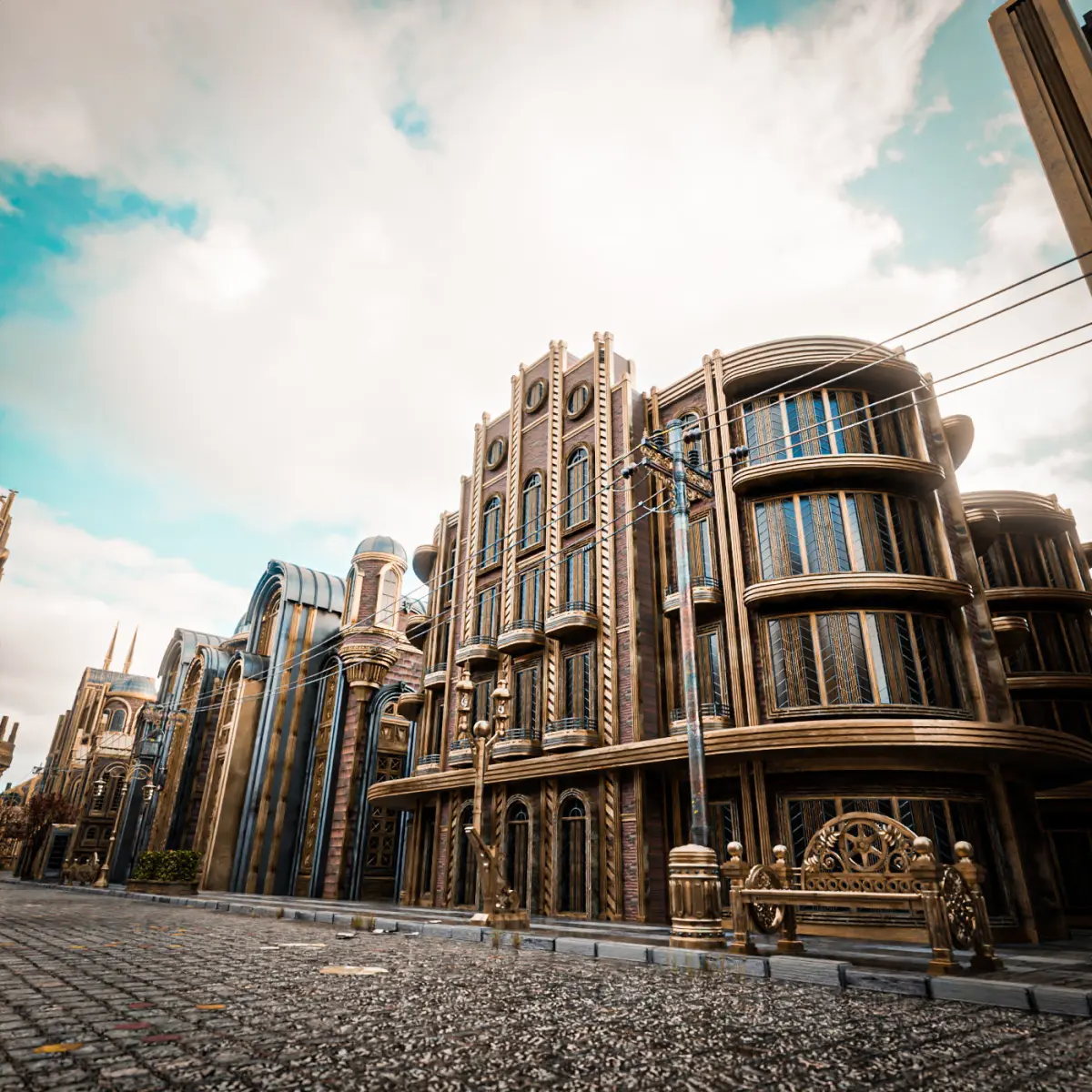 a model of a ART DECO STEAMPUNK BUILDING. everything is handmade by me with attention to detail, really good model to use for film, VFX, or game. 2K texture included. PBR ready. normal maps, specular, roughness etc. no triangle or ngon. only quad. uv mapped. medium poly 3d model. easy if you want to change the texture.(all pbr texture included in the pack). this is part of my STEAMPUNK ART DECO PACK. be sure to check my page. save more by buying the pack. thank you.