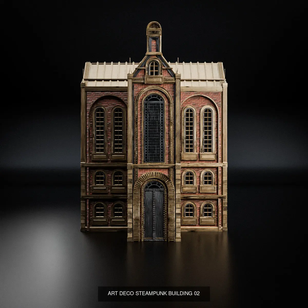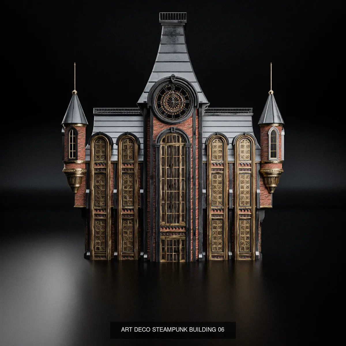 6 model of a ART DECO STEAMPUNK BUILDING. everything is handmade by me with attention to detail, really good model to use for film, VFX, or game. 2K texture included. PBR ready. normal maps, specular, roughness etc. no triangle or ngon. only quad. uv mapped. medium poly 3d model. easy if you want to change the texture.(all pbr texture included in the pack). this is part of my STEAMPUNK ART DECO PACK. be sure to check my page. save more by buying the pack. thank you.-------------------------------Individually, these items cost $102