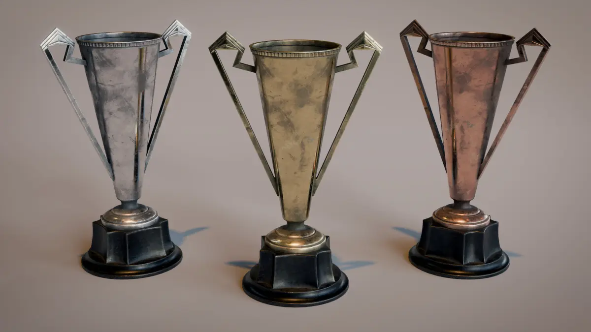 This Art Deco Trophy Set model is created with Blender and textured in Substance Painter. You can use this model in your games, visual projects etc.