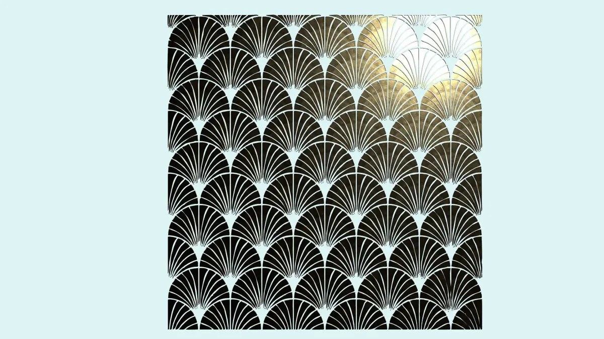 Art deco wall decoration or fireplace screen. Two types of form are included: filled and empty. Suitable for interior design. Materiale is editable. Fits good with gold/ metals or woods.