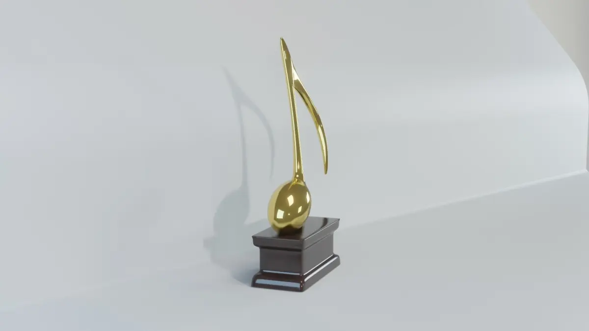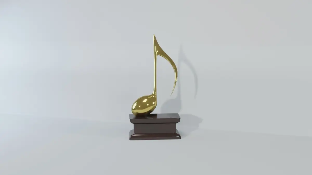 Model contain a Golden Eight Note on a Stand (2 separate objects) - Completely scalable to fit your room as Room Decoration or Desk Decoration.