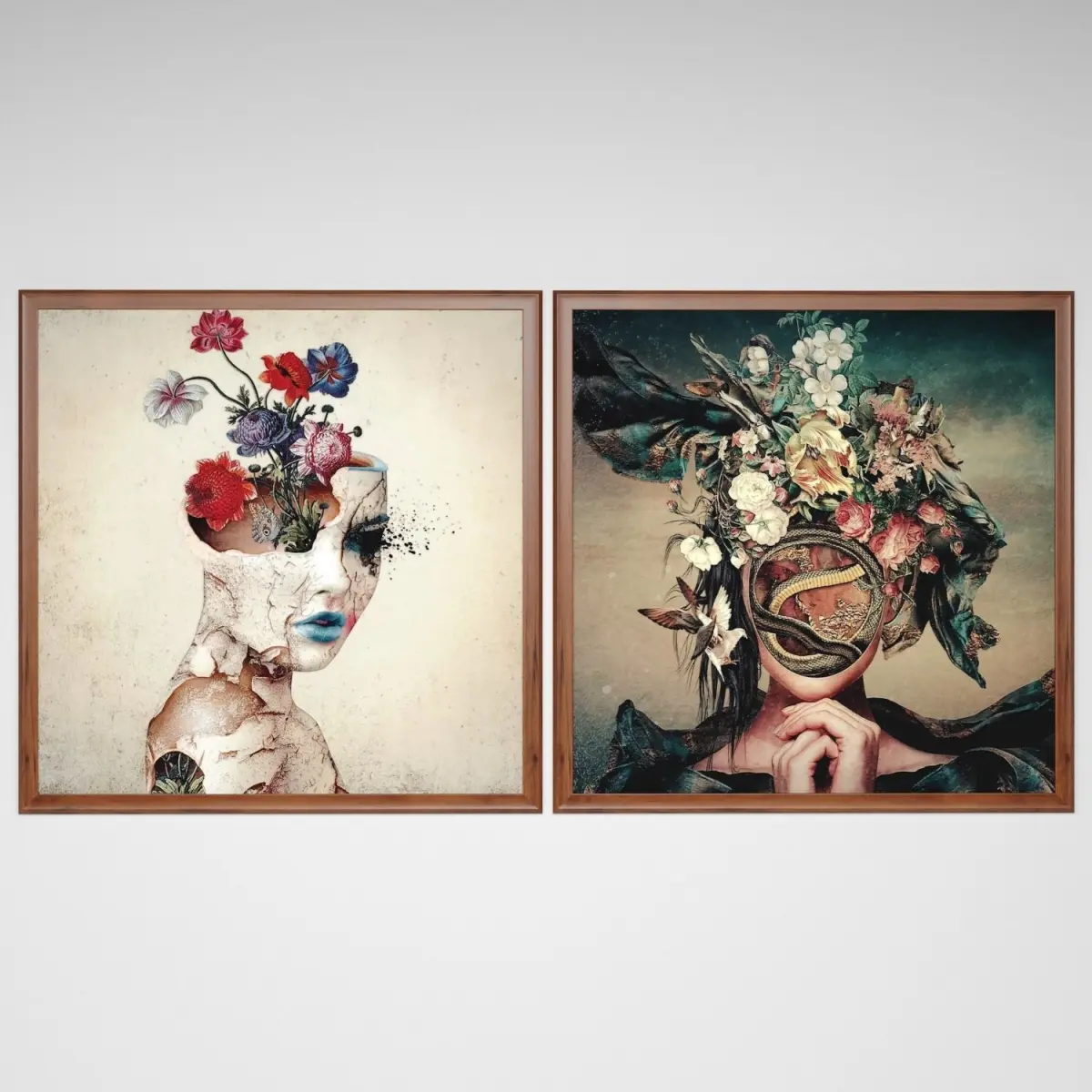 2 Art By 5 Frames:1-Black frame2- Gray frame3-gold frame4- wood frame5-white frame