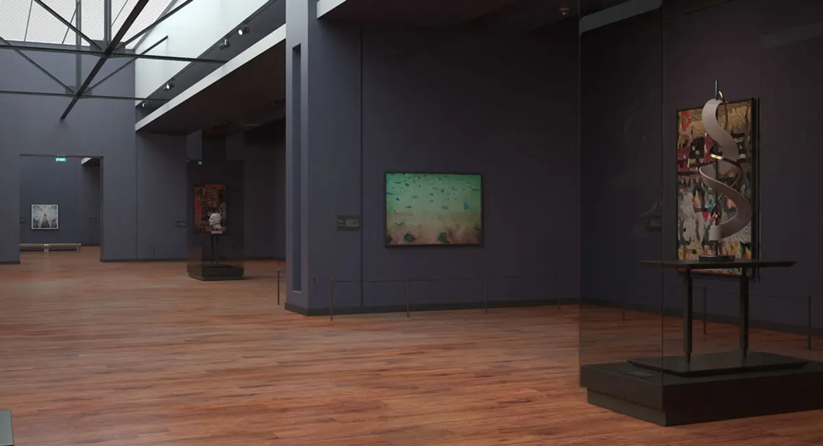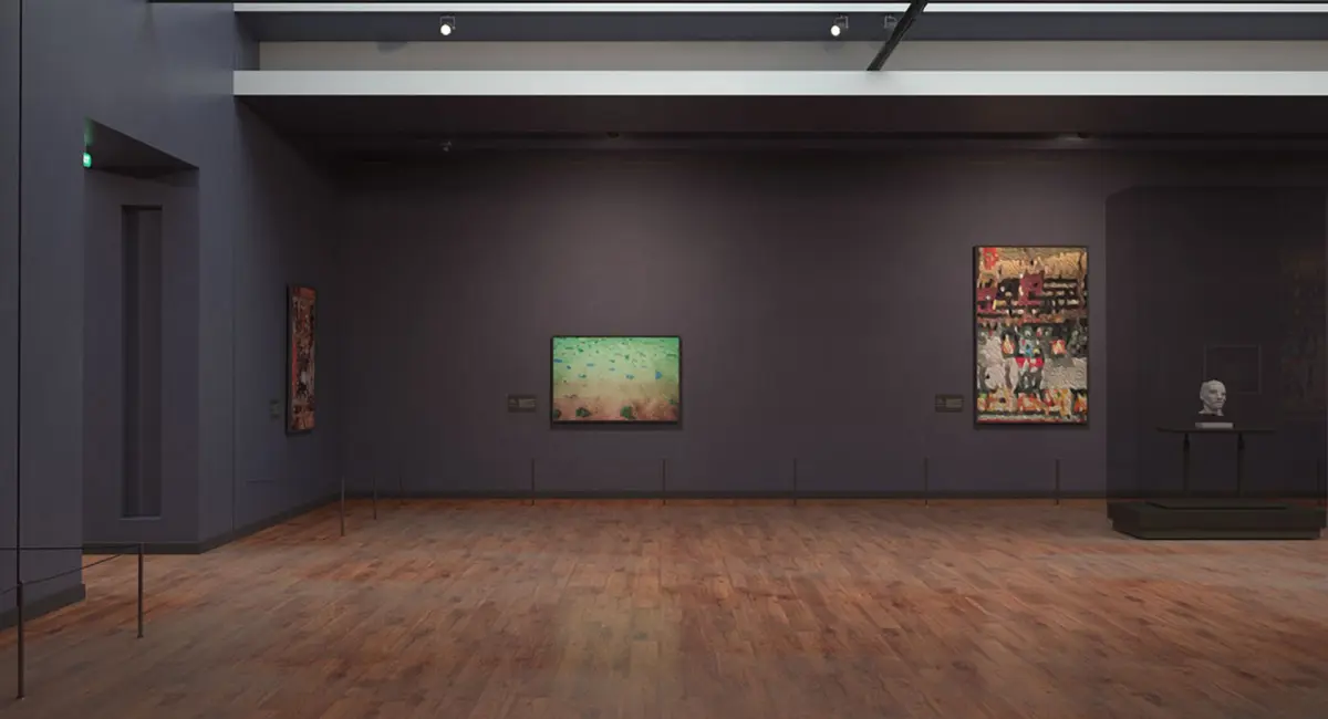 This is a full scene of an Art Gallery.