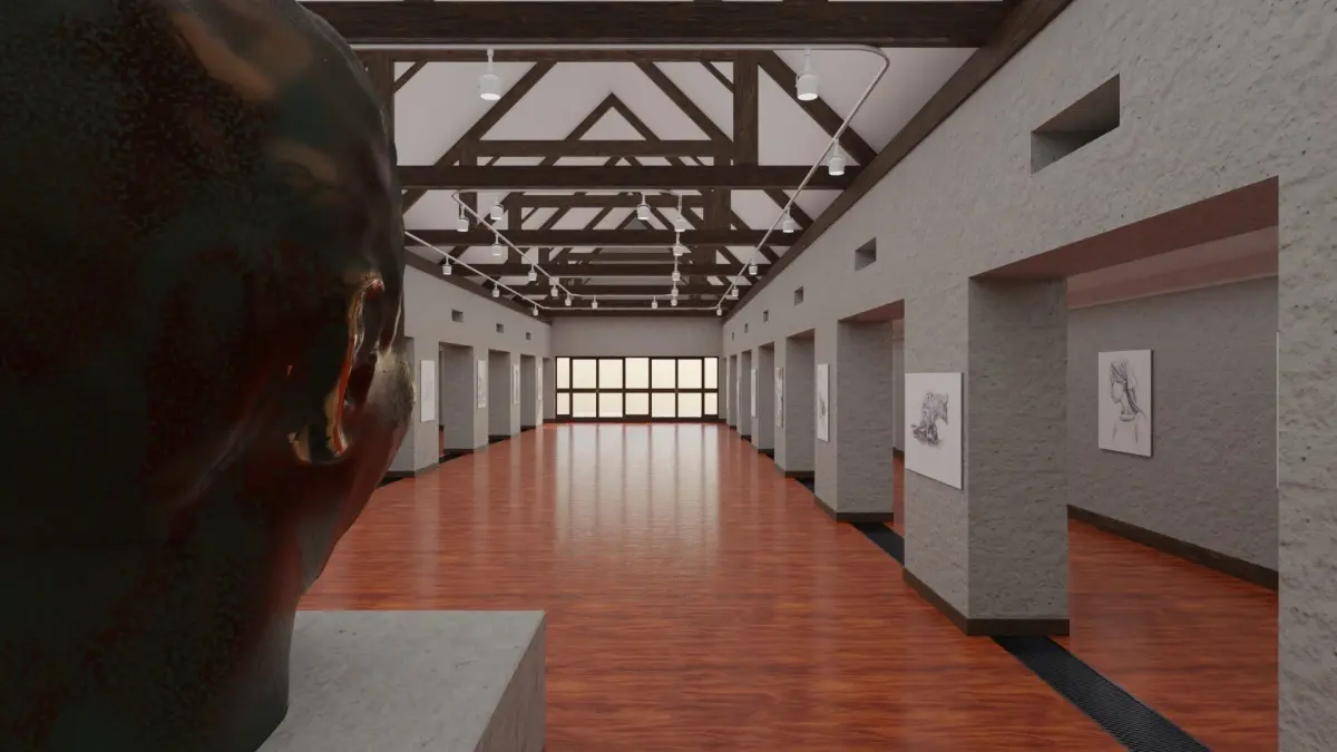 Art gallery with plenty of space for flat artworks as well as lots of floor space for sculptures.The roof is structure is ideal for hanging installations.