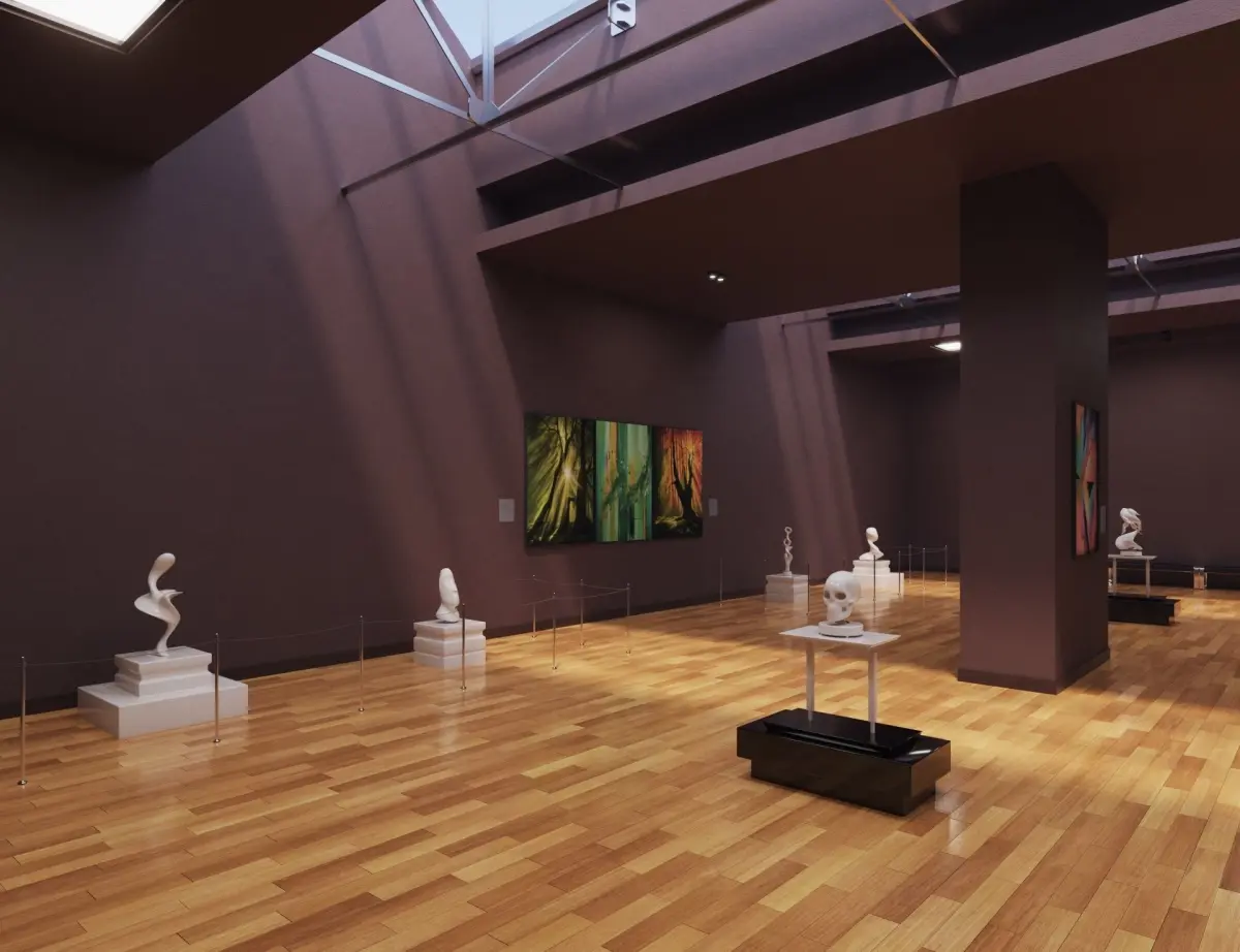Realistic Art Gallery Showroom interior. Ready for render with VRay and Corona renderers.