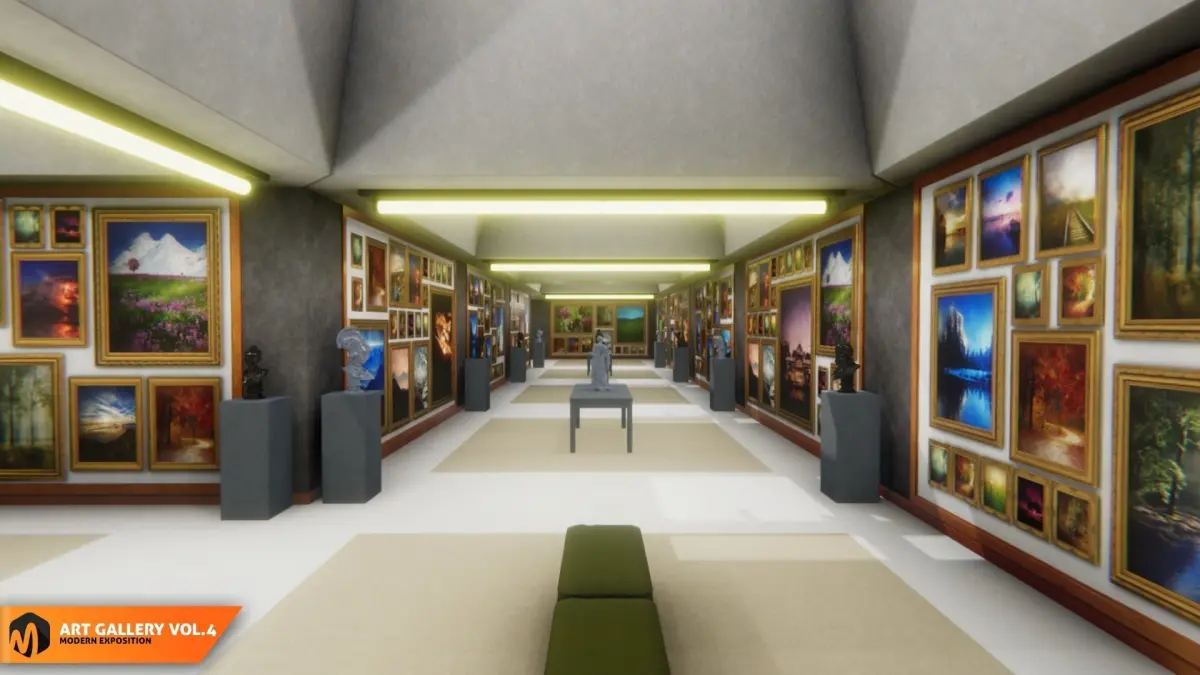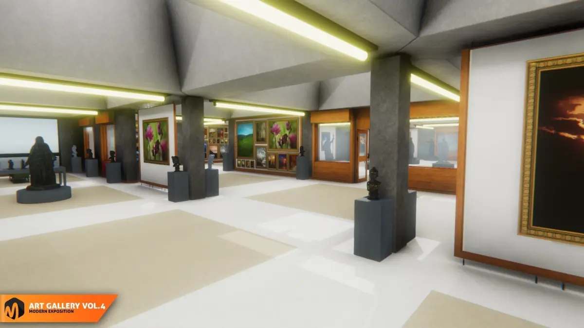 Mixaill studio presents a good solution for your games, VR projects and simulators.Art gallery Vol.4 - modern exposition it is a completely modular building, with different types of paintings, statues, furniture. An excellent solution for VR projects.