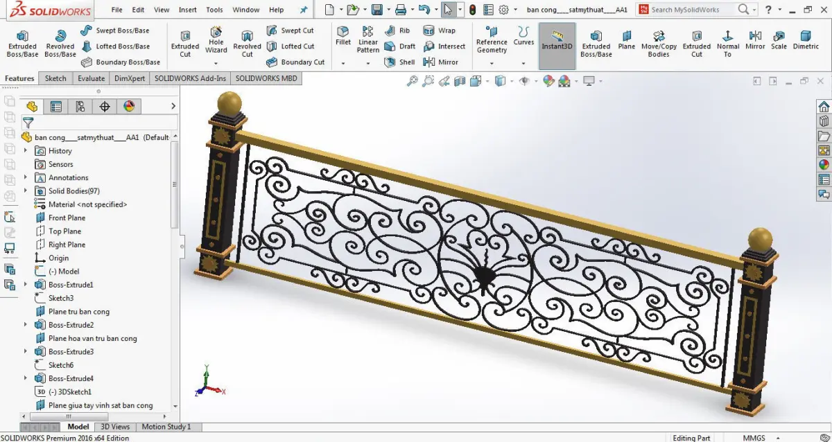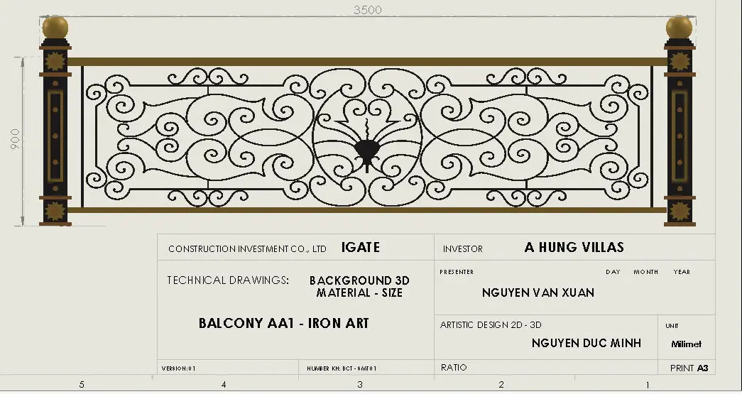 3D model Iron art designed by computer drawing with 2D technical drawings ready for use in exterior architecture, construction of villas, hotels, restaurants, classic townhouses.