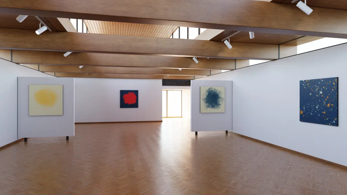 The floor, wood elements and paintings (front) are textured. Rest of the scene is not UV unwrapped.