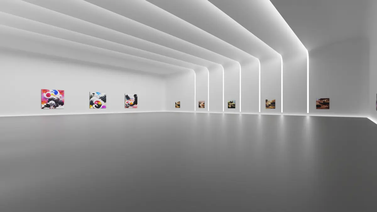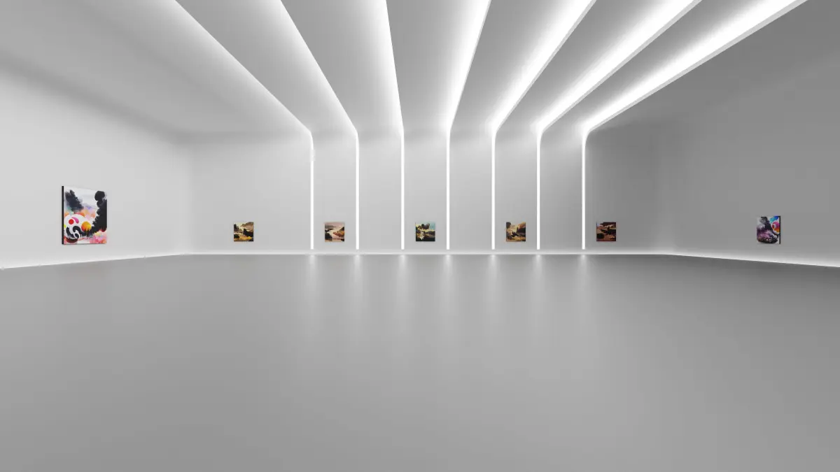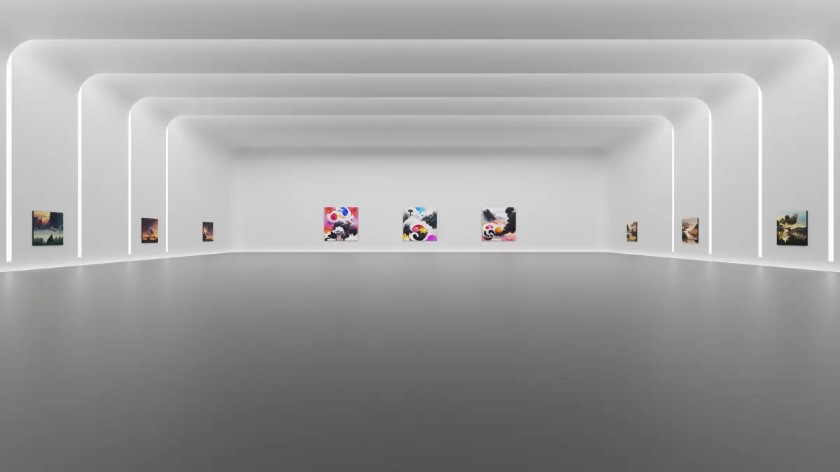 The floor and paintings (front) are textured. Rest of the scene is not UV unwrapped.