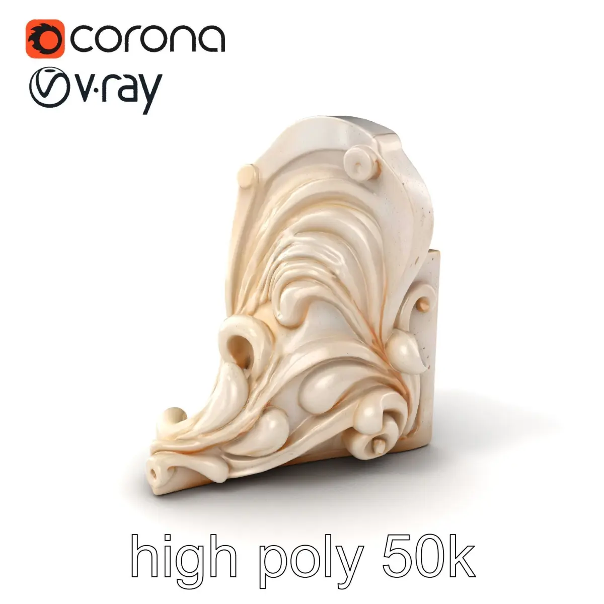 Each model has 3 levels of detail: low-poly, middle-poly, and high-poly, which allows for the use of this model in production rendering (such as 3ds Max, Maya, Cinema 4D, Blender, Vray/Corona/Cycles, and all others), game engines (Unity and Unreal compatible), and interactive presentations, providing a choice of detail based on the LOD System principle. This model is ideal for architectural visualization, interior design, and art projects, showcasing exquisite flowing lines, soft relief, and botanical motifs. The model's textures are PBR, including Diffuse, NormalMap, and reflection/roughness/metallic, suitable for any modern rendering engine. All models are accurately unwrapped with no overlapping UVs. Textures are 4096x4096 in size. If you like this model, please like and leave a comment.