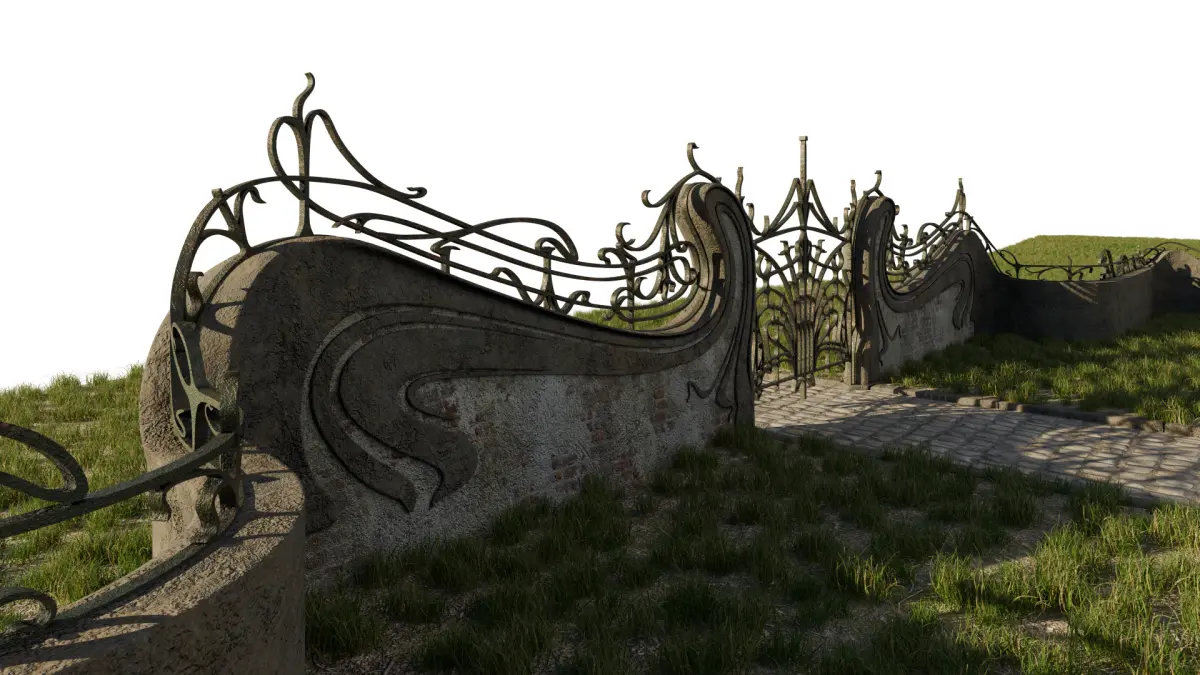 Detailed model of an Art Nouveau wrought-iron gate. Suitable for high resolution close-ups. Real world scale. Cameras are placed at eye level (~1.65m / 5'5'').