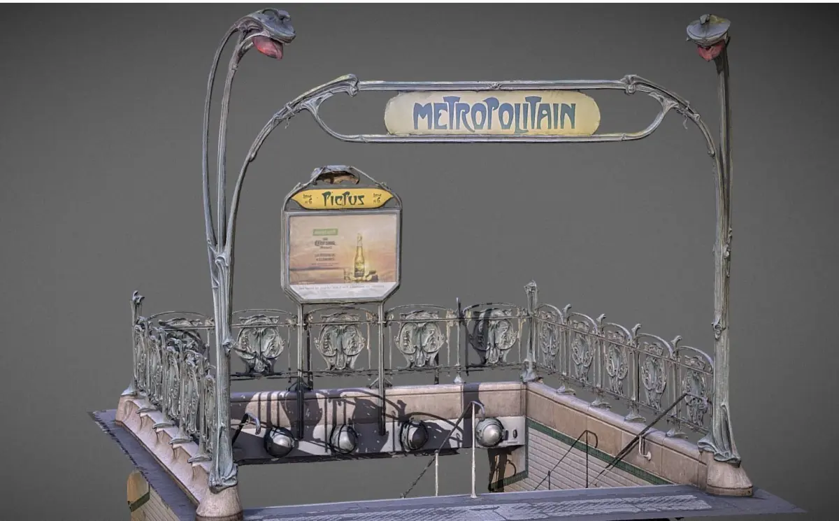 Photogrammetry scan of this Art Nouveau Subway Entrance named Picpus in Paris 12th. 890 pictures for this scan. 250K triangles with 4 udims PBR textures. Gameready asset.